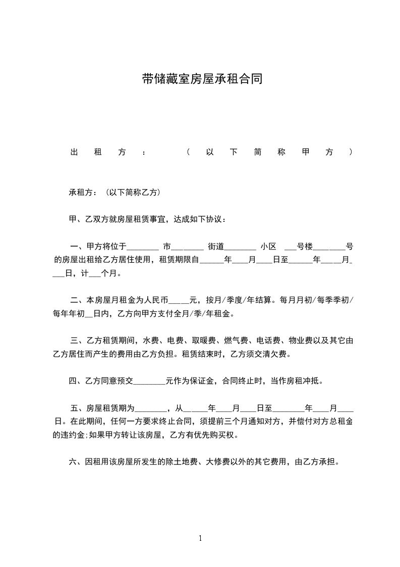 出租方(甲方):______________,男/女,_____________年__________月__________日出生,身份证号码___________________承租方(乙方):______________,男/女,_____________年__________月__________日出生,身份证号码___________________甲、乙双方就房屋租赁事宜,达成如下协议:_________________一、甲方将位于__________市__________街道__________小区_____号楼_____________号的房屋出租给乙方居住使用,租赁期限自__________年__________月__________日至__________年__________月__________日,计_____个月。二、本房屋月租金为人民币__________元,按月/季度/年结算。每月月初/每季季初/每年年初_____日内,乙方向甲方支付全月/季/年租金。三、乙方租赁期间,水费、电费、取暖费、燃气费、电话费、物业费以及其它由乙方居住而产生的费用由乙方负担。租赁结束时,乙方须交清欠费。四、乙方不得随意损坏房屋设施,如需装修或改造,需先征得甲方同意,并承担装修改造费用。租赁结束时,乙方须将房屋设施恢复原状。五、租赁期满后,如乙方要求继续租赁,则须提前__________个月向甲方提出,甲方收到乙方要求后_____天内答复。如同意继续租赁,则续签租赁合同。同等条件下,乙方享有优先租赁的权利。六、租赁期间,任何一方提出终止合同,需提前__________个月书面通知对方,经双方协商后签订终止合同书。若一方强行中止合同,须向另一方支付违约金_____元。七、发生争议,甲、乙双方友好协商解决。协商不成时,提请由当地人民法院仲裁。八、本合同连一式_____份,甲、乙双方各执_____份,自双方签字之日起生效。甲方:_________________乙方:______________________年_____月_____日