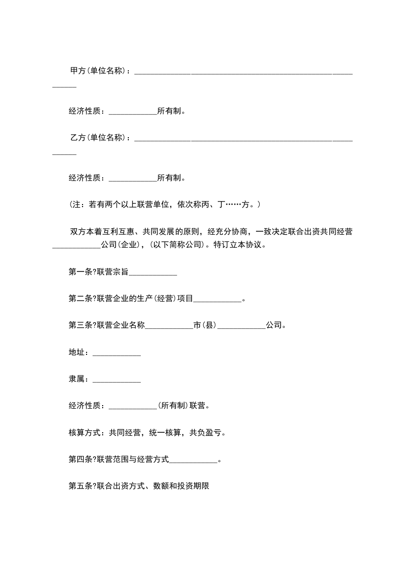 第三条?联营企业名称____________市(县)____________公司。