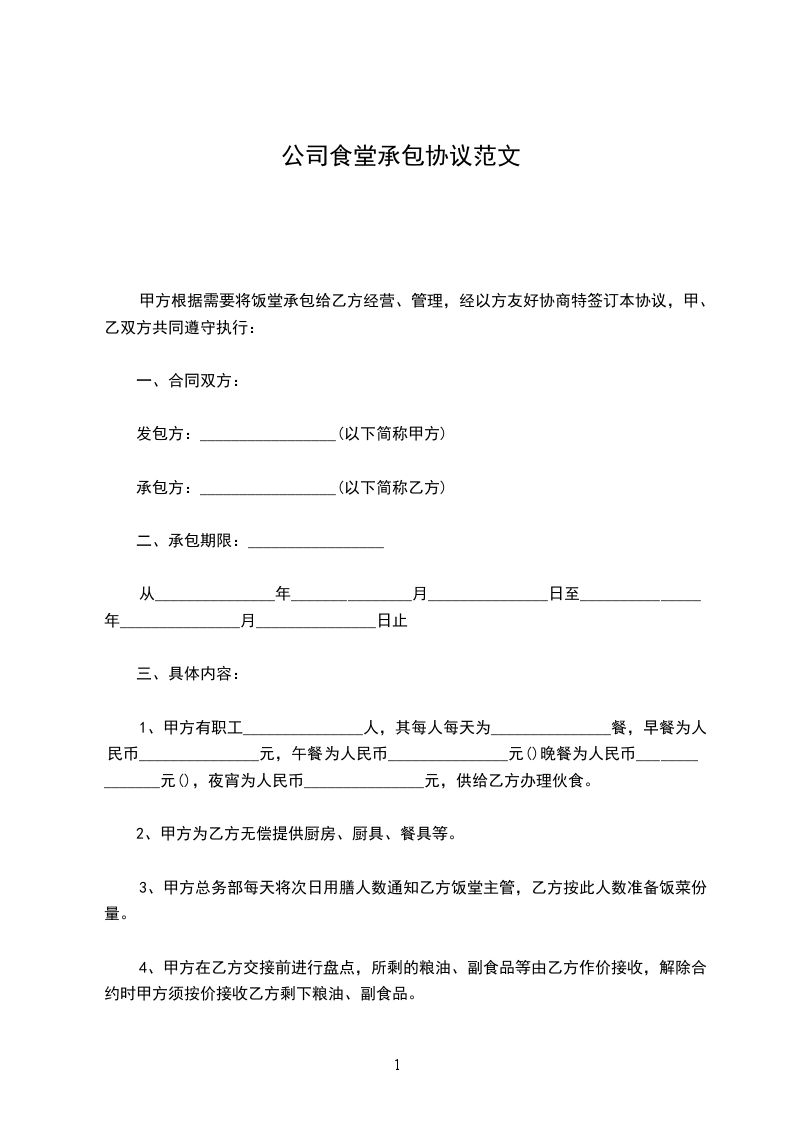甲方根据需要将饭堂承包给乙方经营、管理,经以方友好协商特签订本协议,甲、乙双方共同遵守执行: