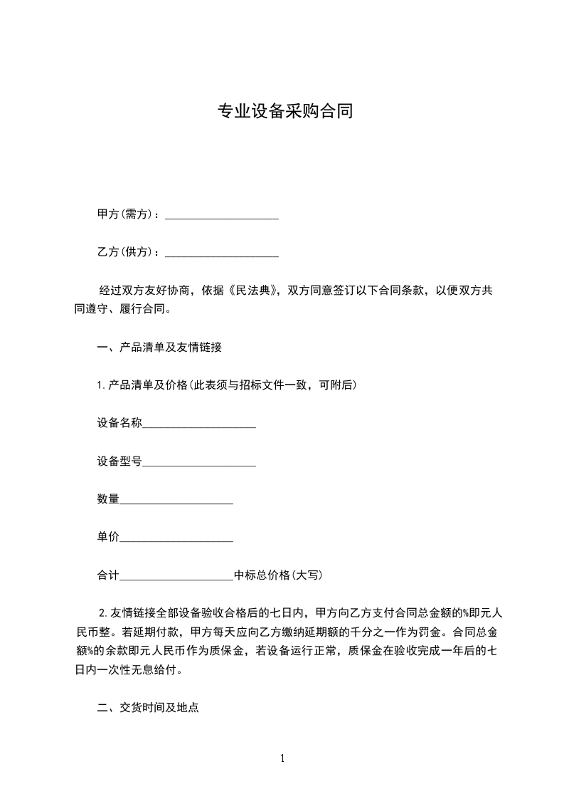 2.友情链接全部设备验收合格后的七日内,甲方向乙方支付合同总金额的_____%即元人民币整。若延期付款,甲方每天应向乙方缴纳延期额的千分之一作为罚金。合同总金额%的余款即元人民币作为质保金,若设备运行正常,质保金在验收完成一年后的七日内一次性无息给付。