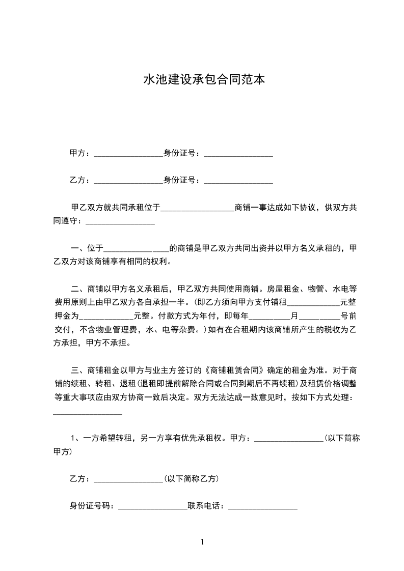 甲乙双方就共同承租位于__________________商铺一事达成如下协议,供双方共同遵守:_________________