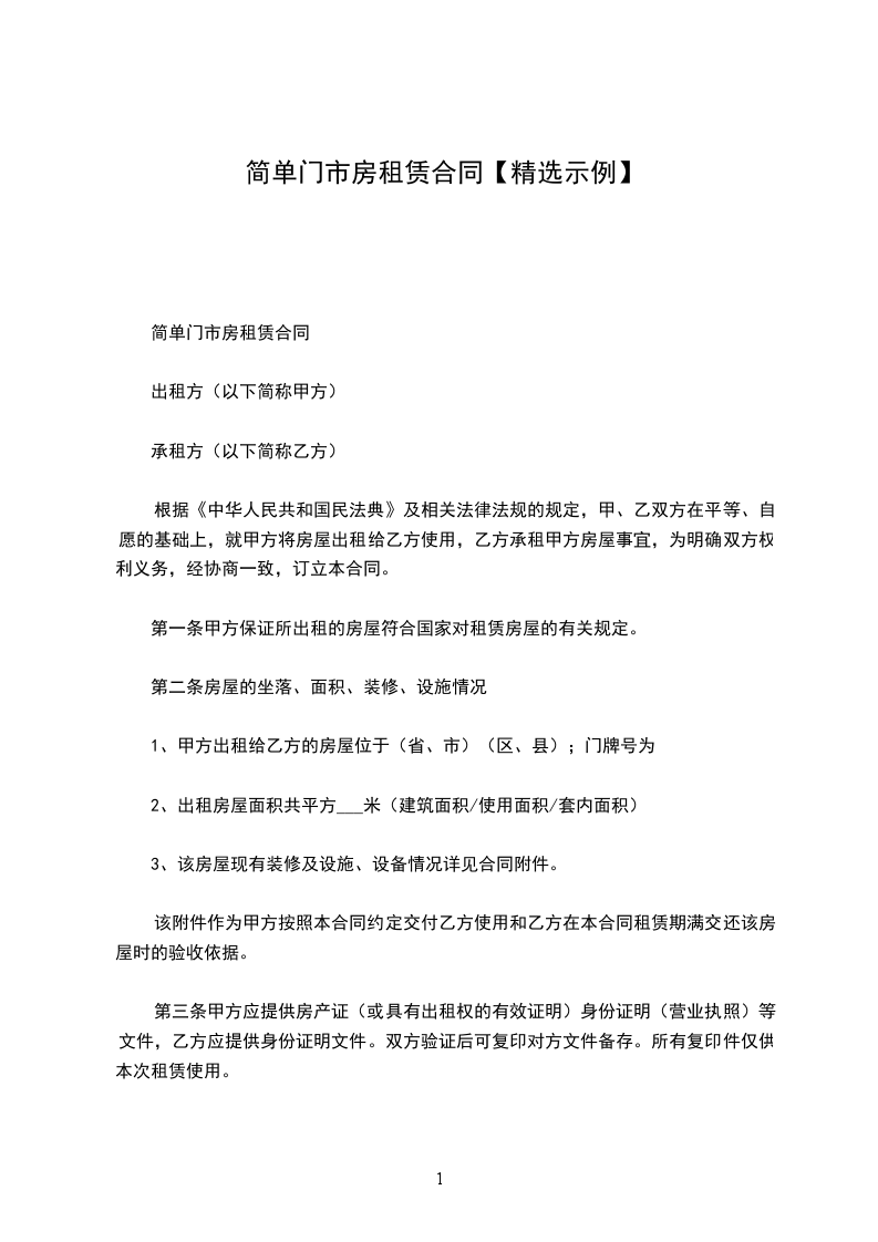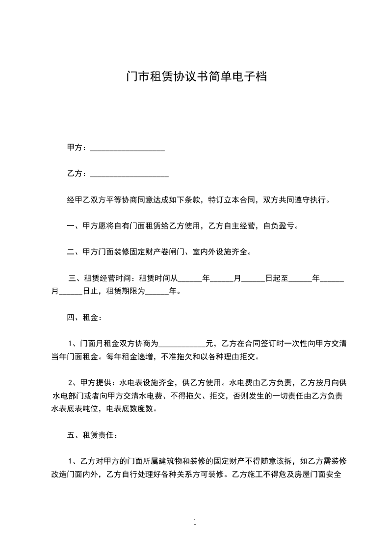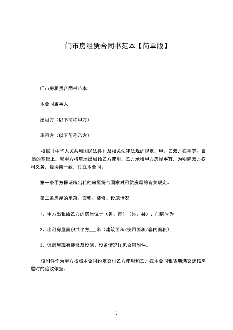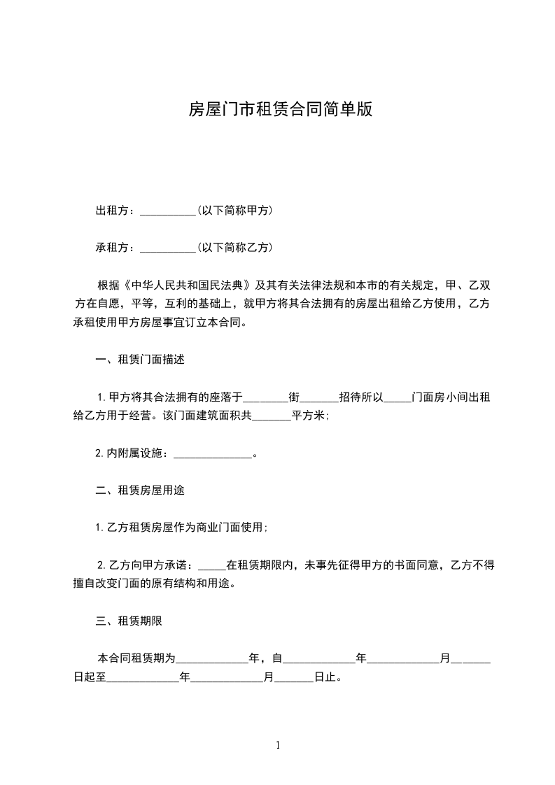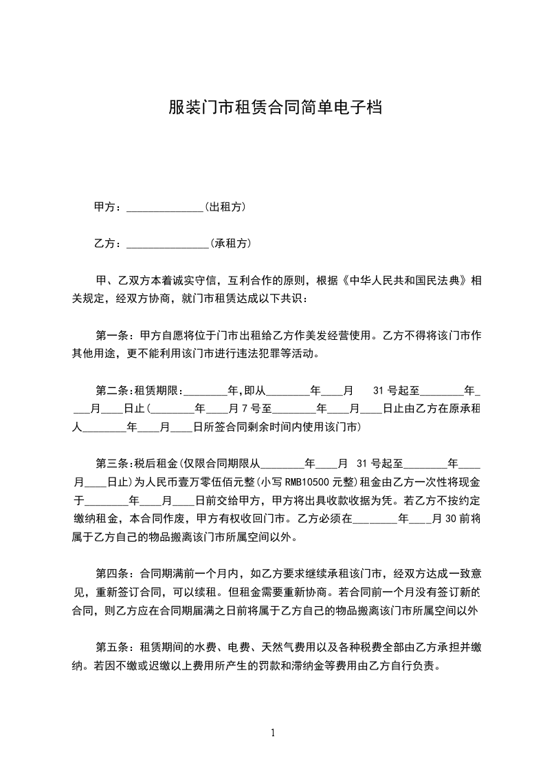 甲方:_________________乙方__________:_________________根据《中华人民共和国民法典》有关规定,经甲、乙双方友好协商,就乙方租凭甲方________________事宜达成如下协议: