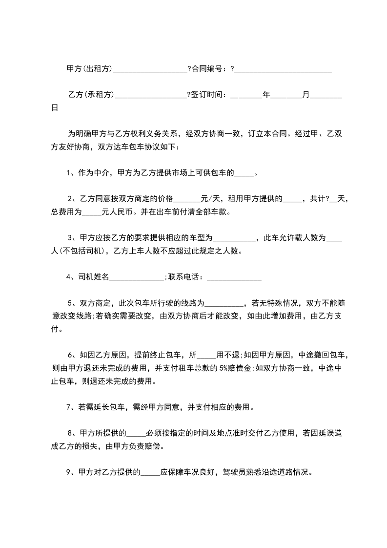 7、若需延长包车,需经甲方同意,并支付相应的费用。