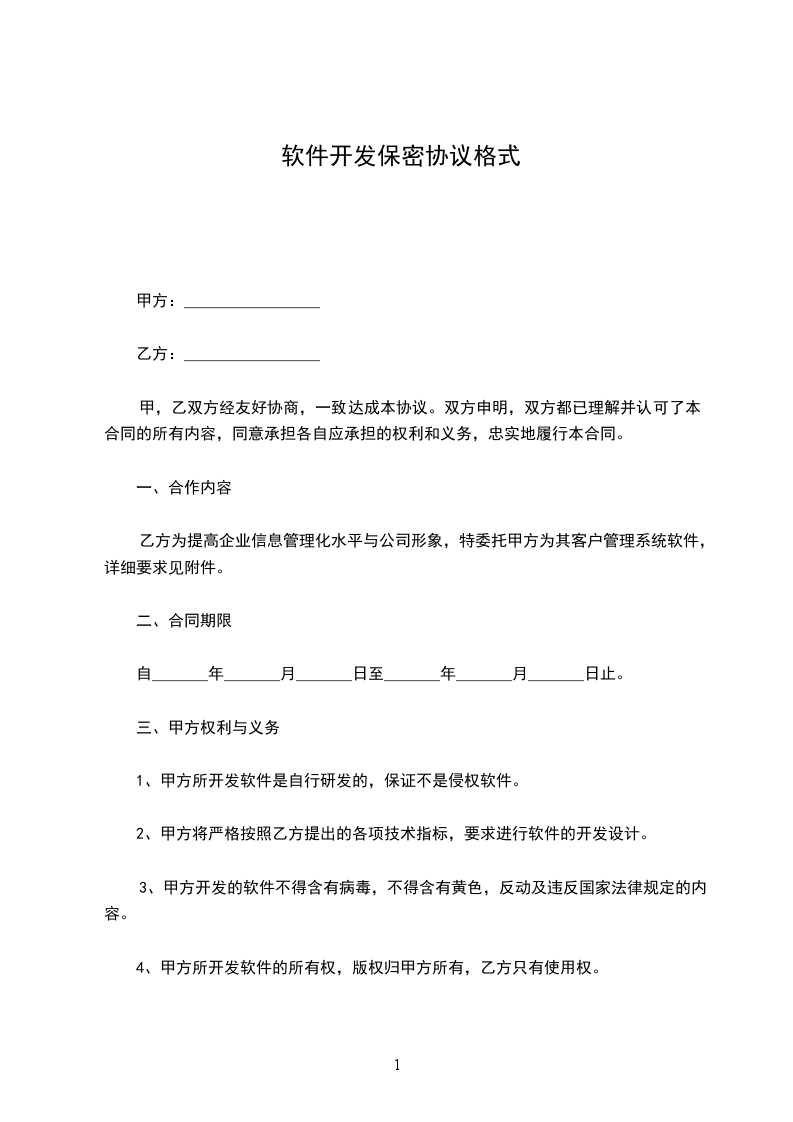 软件开发保密协议格式