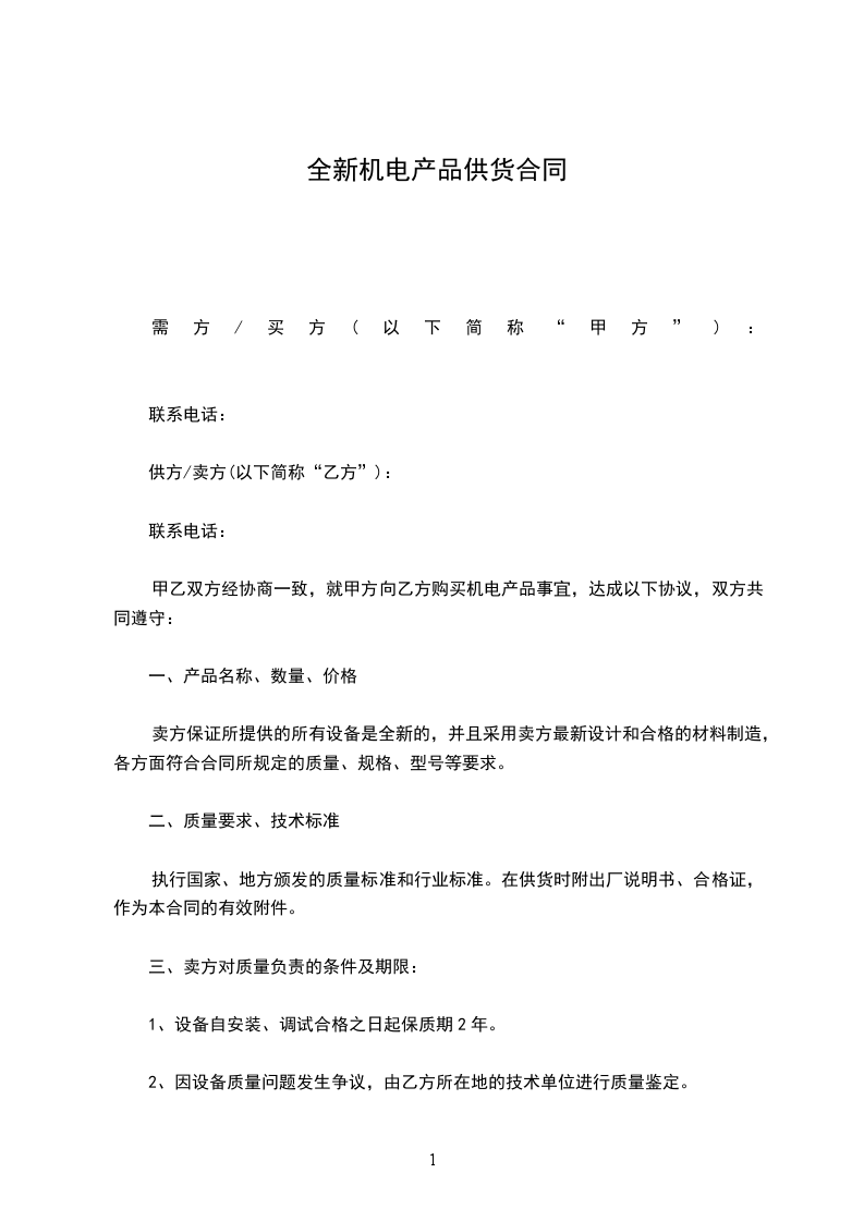 1、乙方所提供的商品应符合国家规定标准及法律、法令规定的标准,并提供国家有关职能部门核准的检测报告或合格证书;