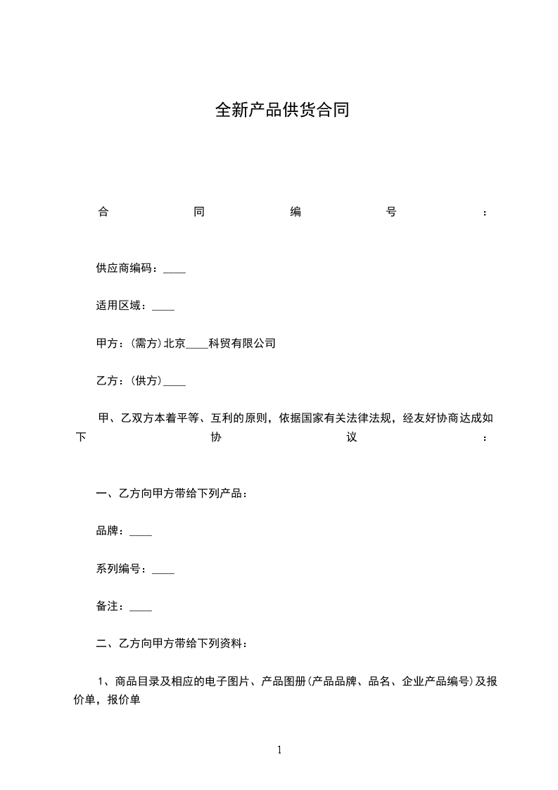 供应方:____(以下简称乙方)