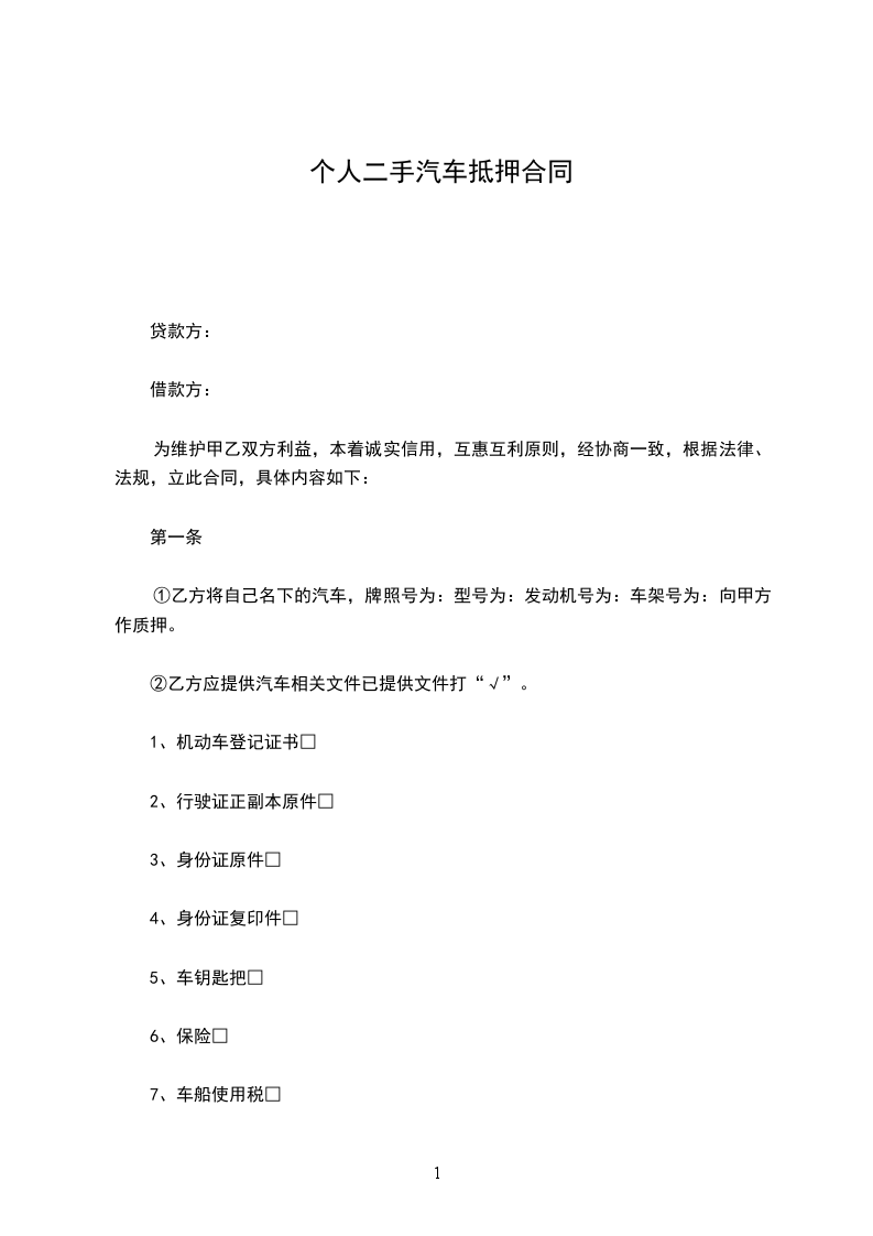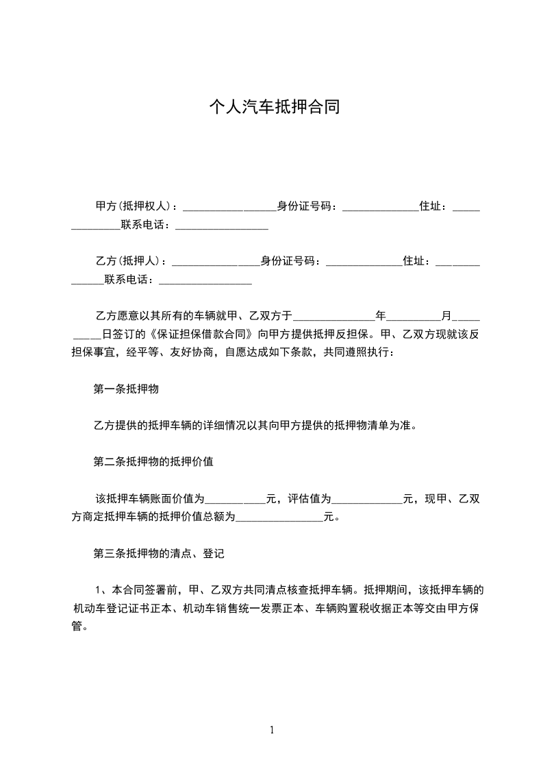 1、本合同签署前,甲、乙双方共同清点核查抵押车辆。抵押期间,该抵押车辆的机动车登记证书正本、机动车销售统一发票正本、车辆购置税收据正本等交由甲方保管。