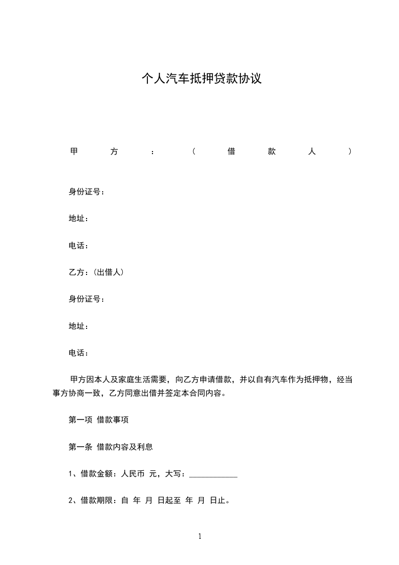 乙方(抵押人):________________身份证号码:______________住址:______________联系电话:_________________