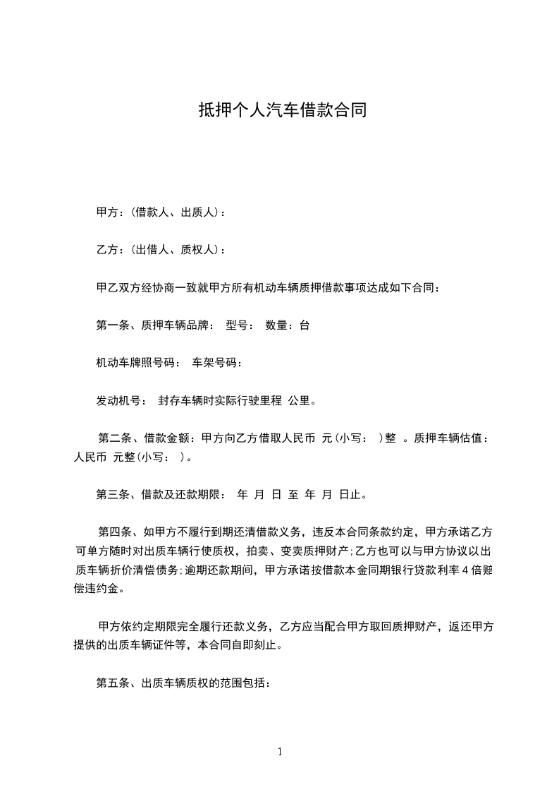 10、乙方保证对抵押车辆享有所有权。