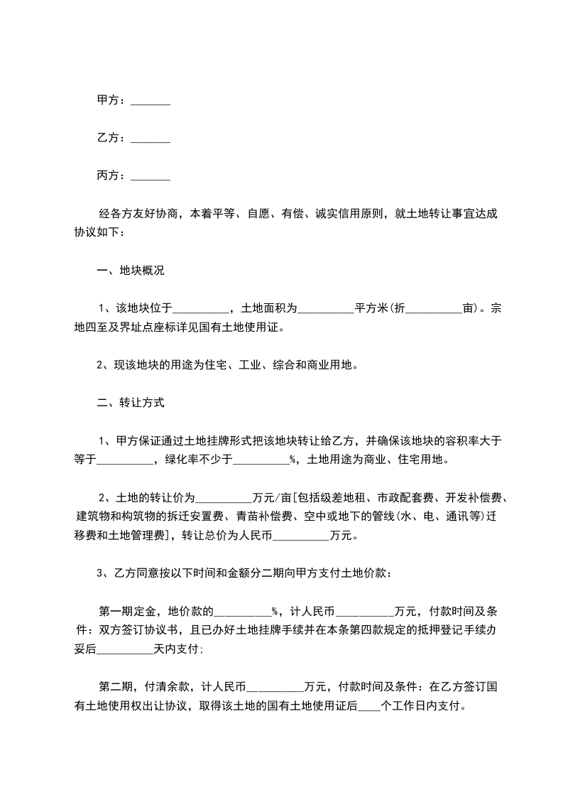 经各方友好协商,本着平等、自愿、有偿、诚实信用原则,就土地转让事宜达成协议如下: