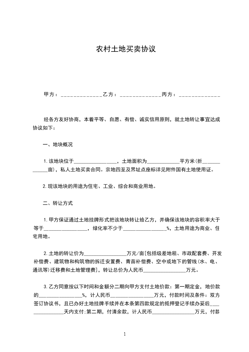 1、该地块位于_______________市_____________,土地面积为_______________平方米(折_______________亩)。宗地四至及界址点座标详见附件。
