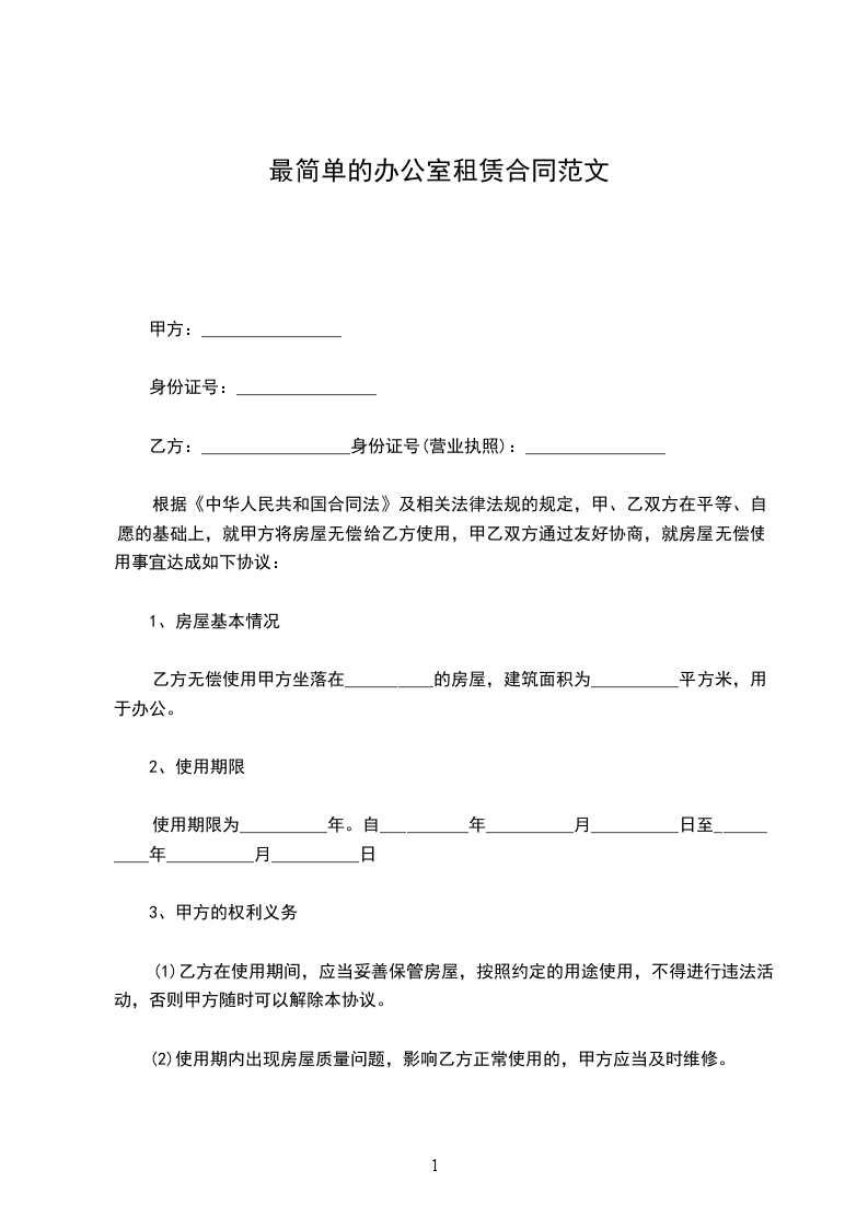 乙方无偿使用甲方坐落在__________的房屋,建筑面积为__________平方米,用于办公。