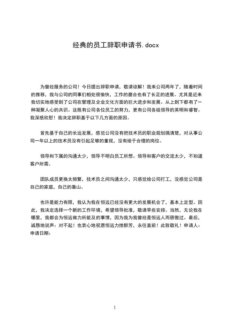 我带着复杂的心情写这封辞职信。
