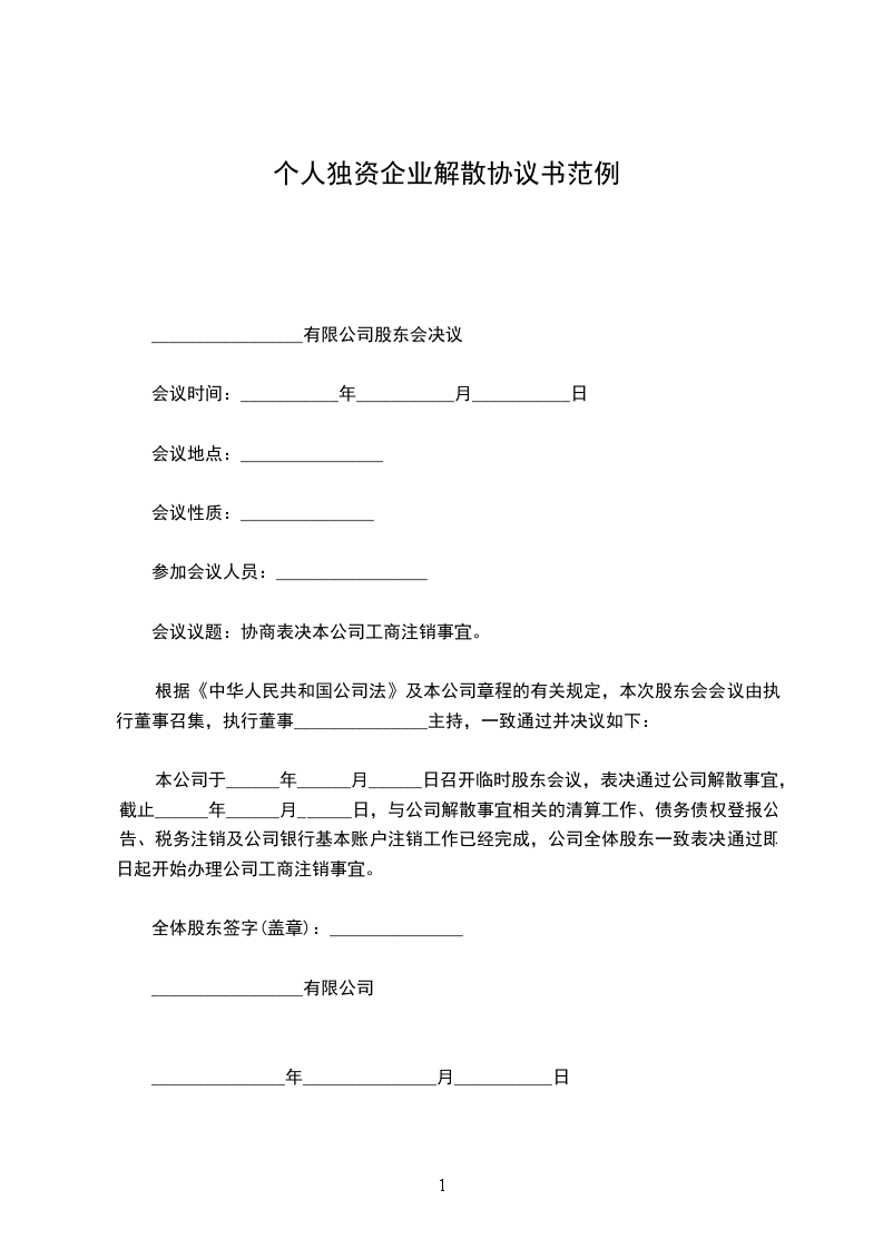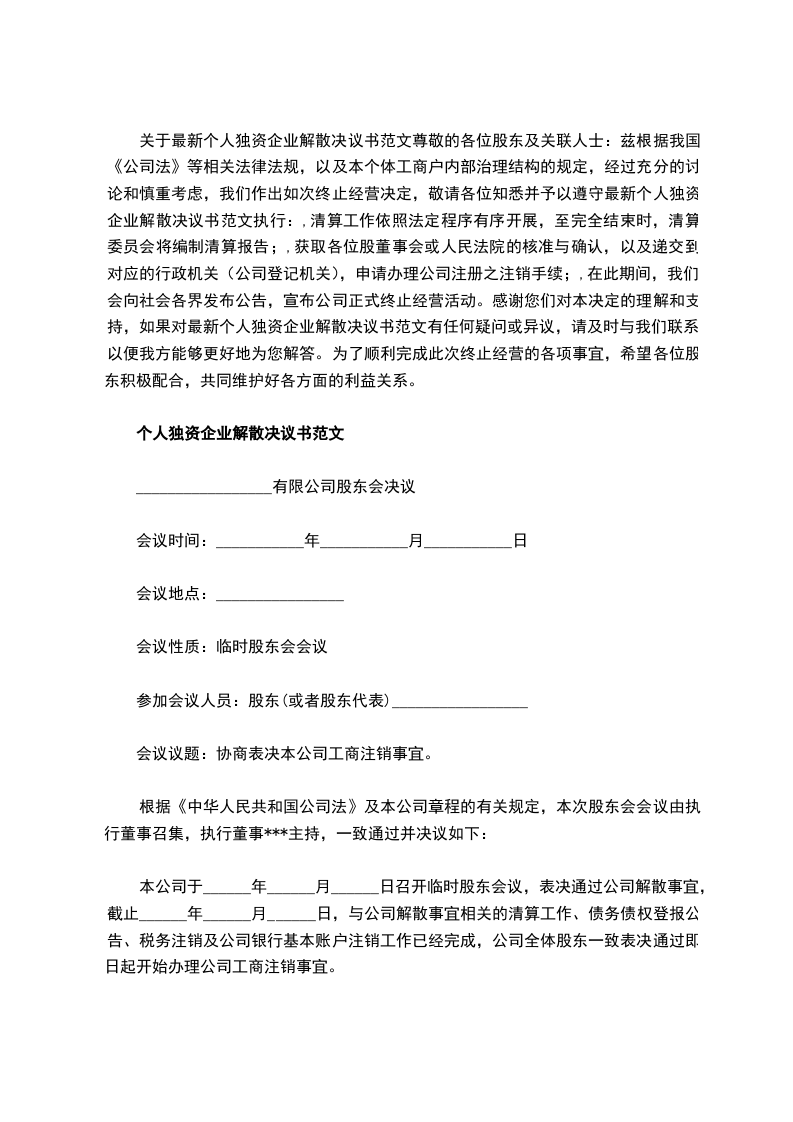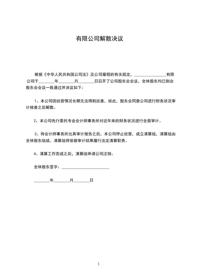 本公司于______年______月______日召开临时股东会议,表决通过公司解散事宜,截止______年______月______日,与公司解散事宜相关的清算工作、债务债权登报公告、税务注销及公司银行基本账户注销工作已经完成,公司全体股东一致表决通过即日起开始办理公司工商注销事宜。