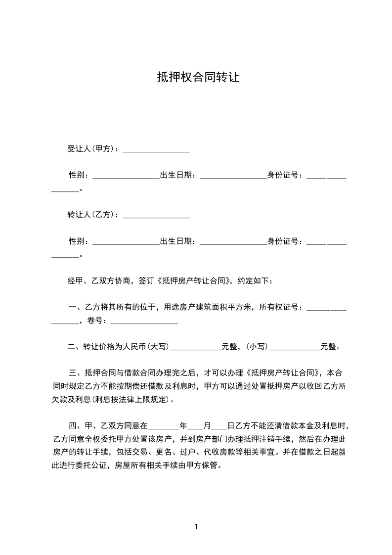 五、甲方于_____年_____月_____日,将抵押房产转让款人民币(大写)元整,小写元整支付给乙方,乙方向甲方出具书面收据。