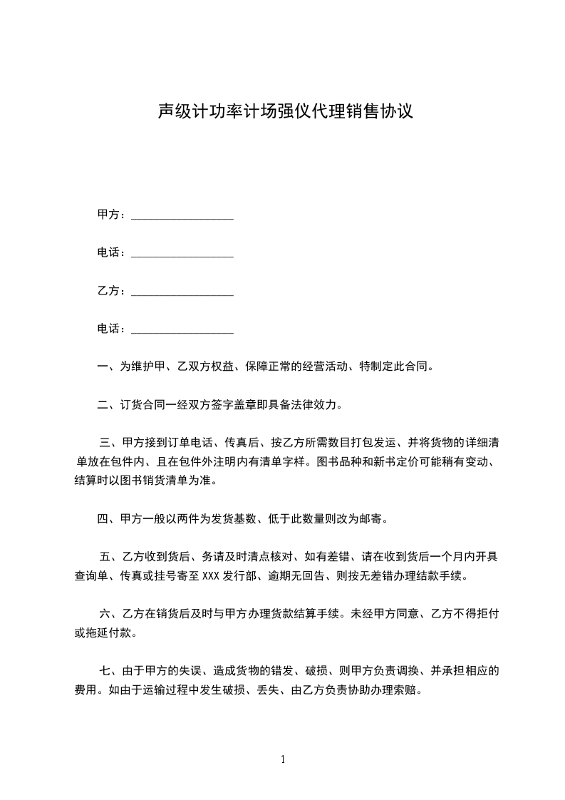 声级计功率计场强仪代销协议