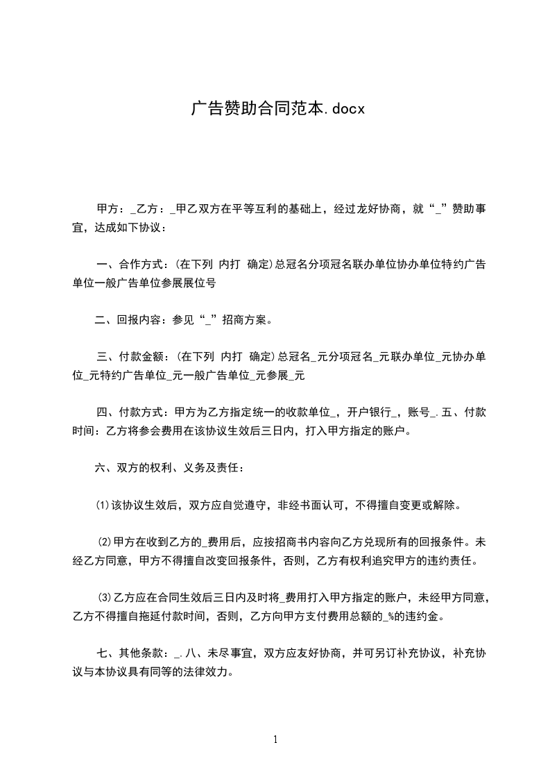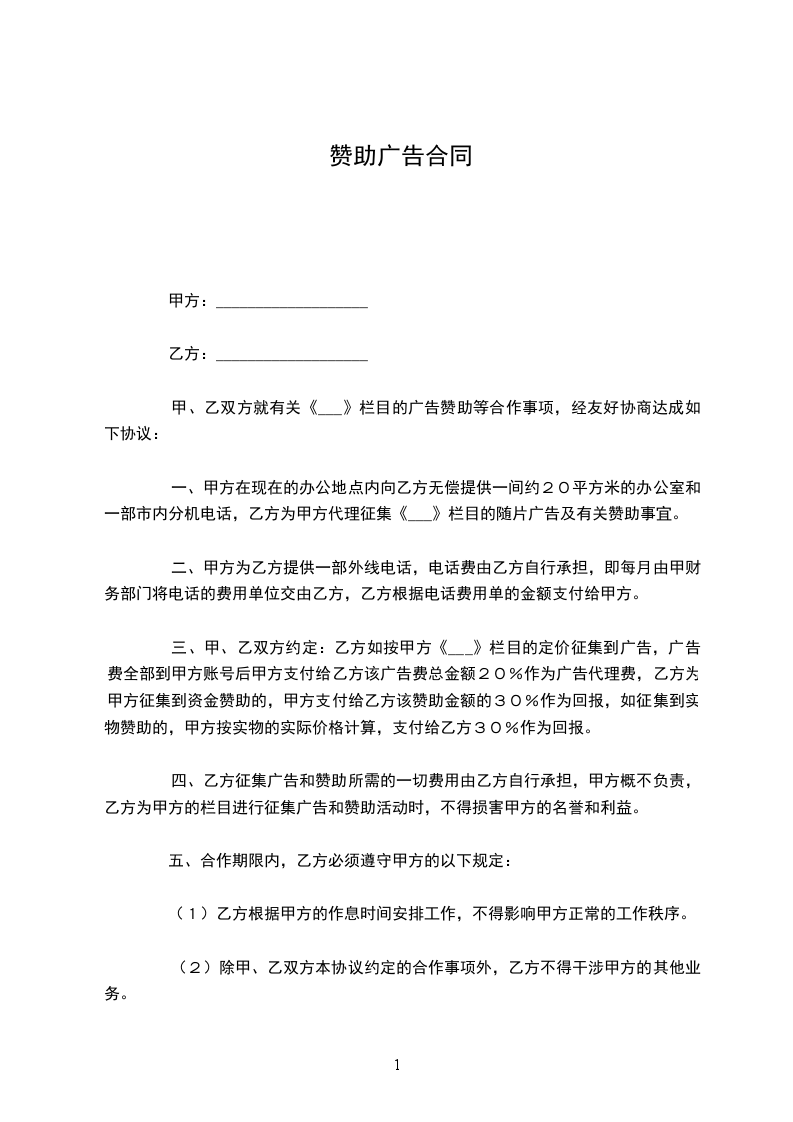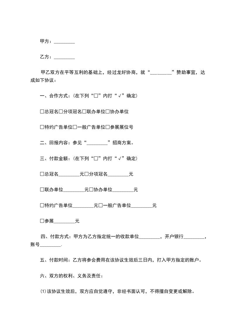 甲乙双方在平等互利的基础上,经过龙好协商,就“_________”赞助事宜,达成如下协议: