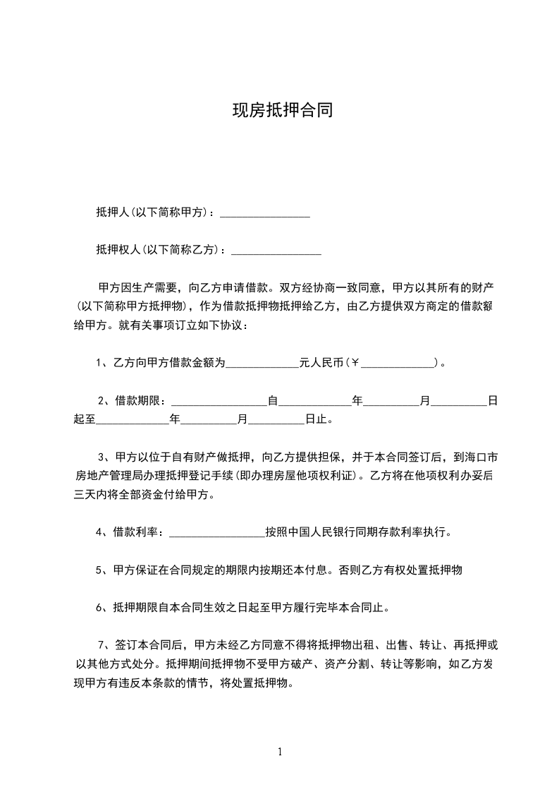 9、本合同自签订之日起,双方应向海口市公证处办理公证手续,有关抵押的登记、公证等一切费用由乙方负责。
