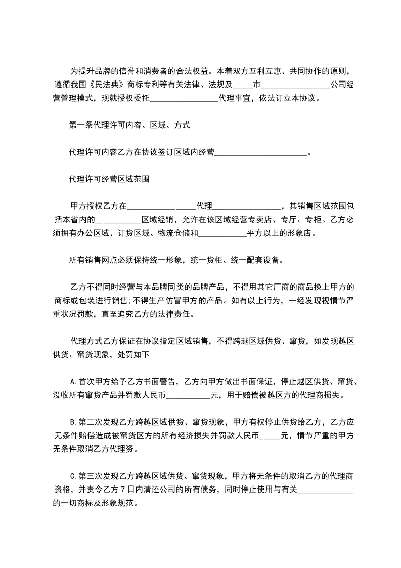 1.甲方授权乙方在规定的销售区域经销_________________品牌专卖、专厅、专柜的产品。