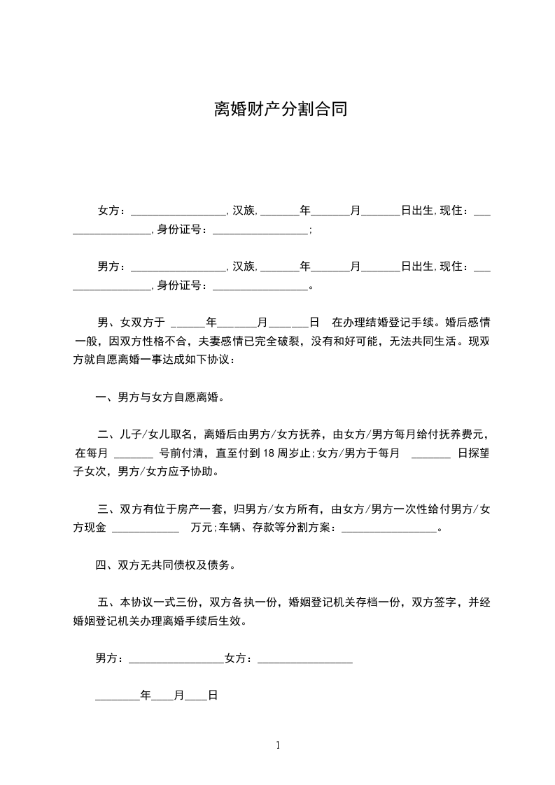 女方:_________________,汉族,_______年_______月_______日出生,现住:_________________,身份证号:_________________;