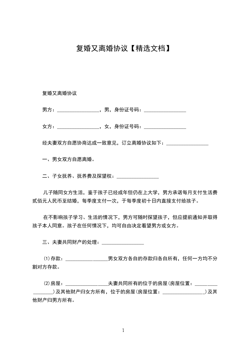 二、将来王__________父母去逝后所留财产,归王__________单独所有。