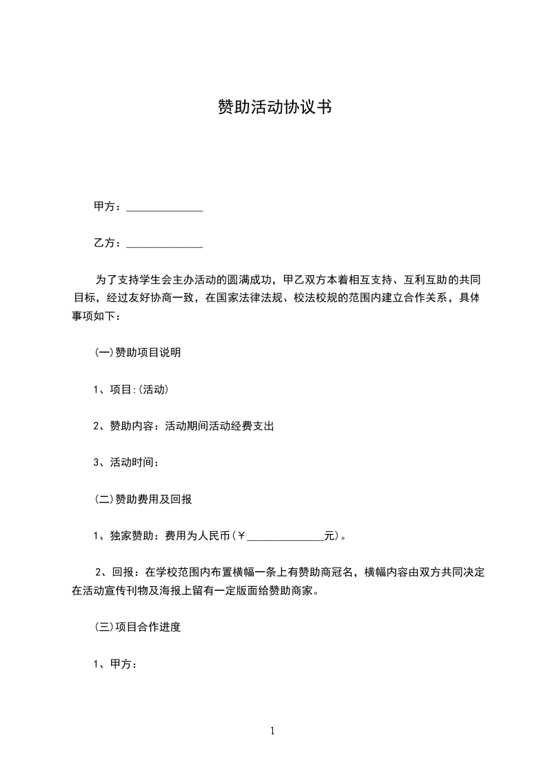 为了支持学生会主办活动的圆满成功,甲乙双方本着相互支持、互利互助的共同目标,经过友好协商一致,在国家法律法规、校法校规的范围内建立合作关系,具体事项如下:
