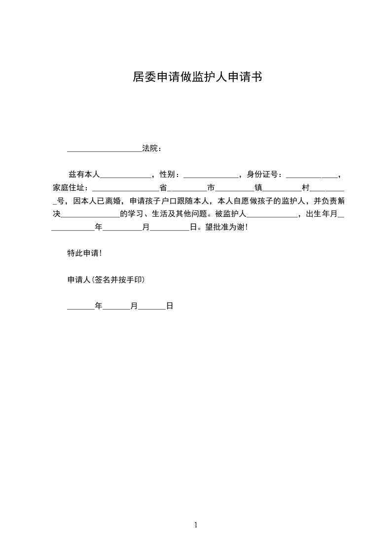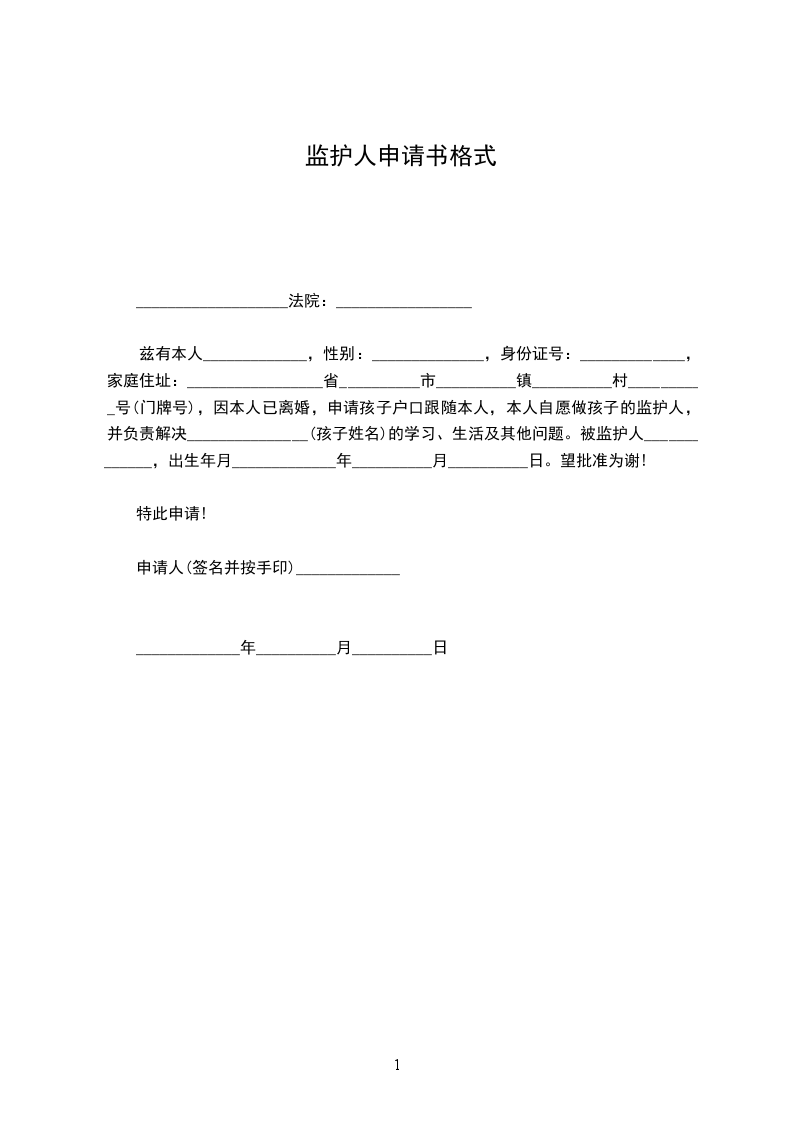 申请人:_________________,男/女,__________年__________月__________日出生,__________族,__________(写明工作单位和职务或者职业),住__________。联系方式:_________________。