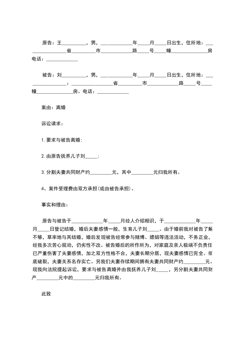 原告王__________,男,_____________年_____月_____日出生,住所地:_________________省__________市_____________路_____号_____幢_______________房。电话:_____________