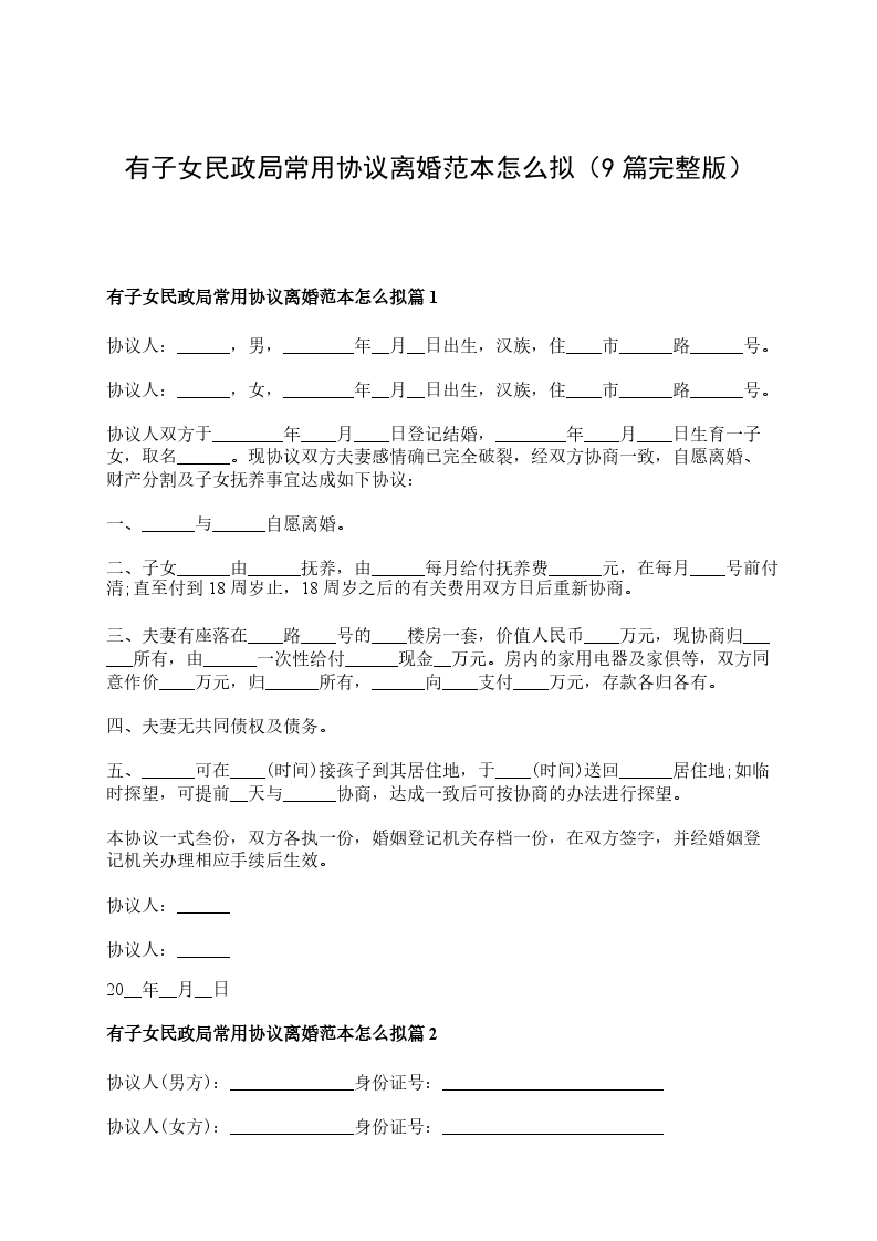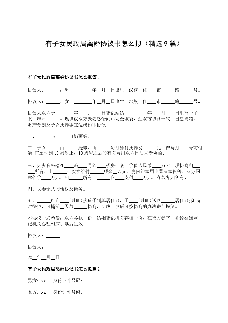 本协议一式____份,双方各执一份,婚姻登记机关存档一份,在双方签字,并经婚姻登记机关办理相应手续后生效。