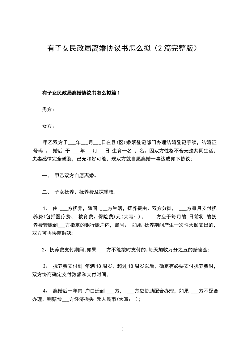 1、双方于_______年_______月_______日生育一女儿,取名:________,于_______年_______月_______日生育一儿子,取名:_______。离婚后儿子及女儿随_______直接抚养生活。