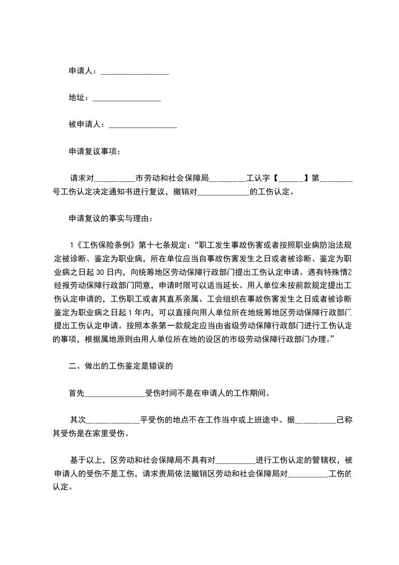 请求对__________市劳动和社会保障局_________工认字【______】第________号工伤认定决定通知书进行复议,撤销对_____________的工伤认定。