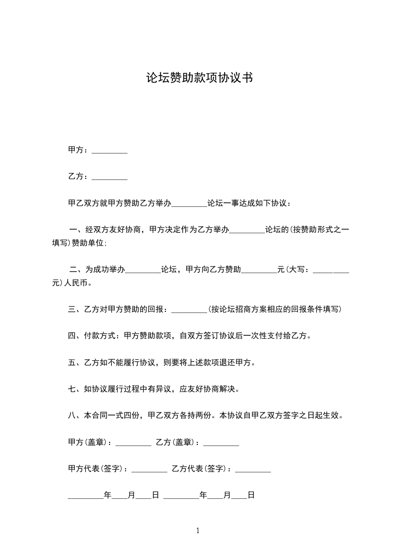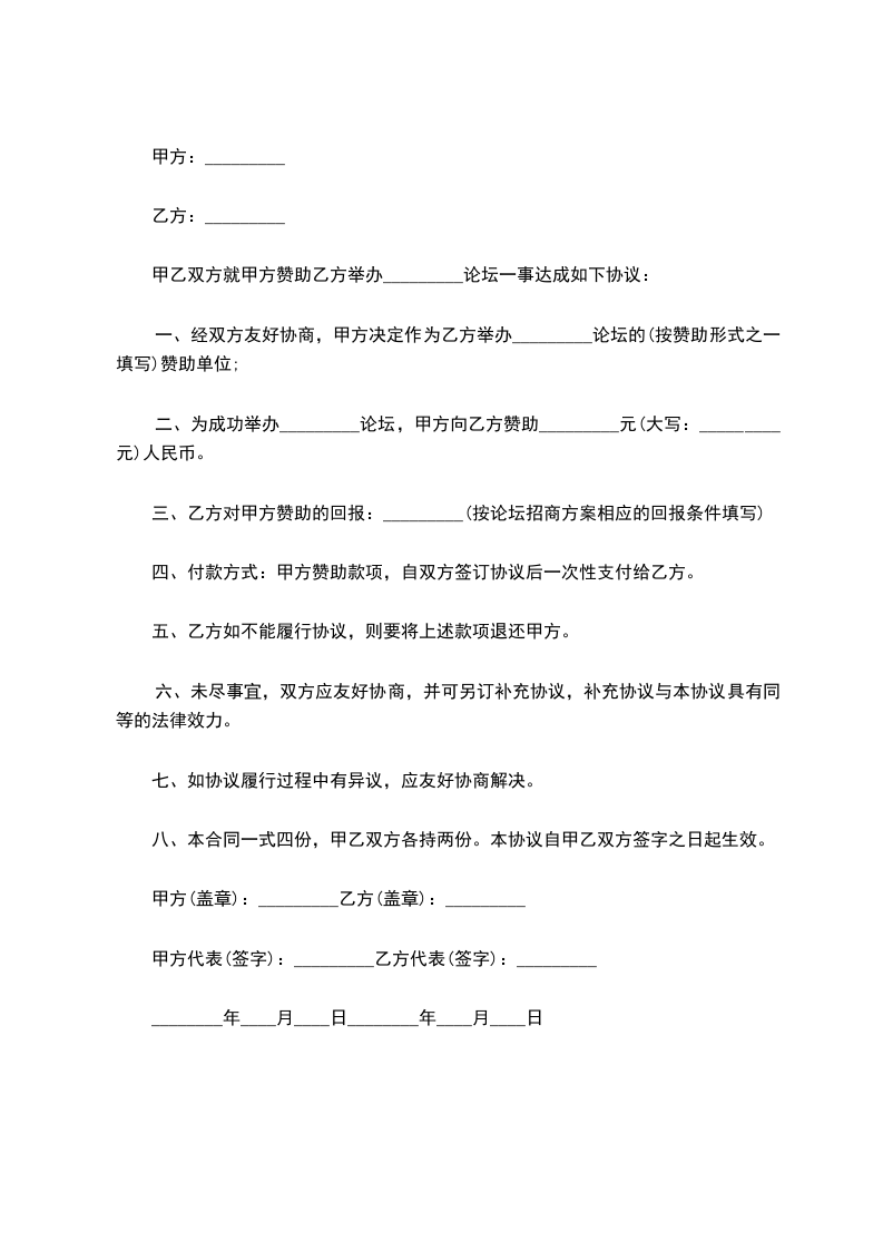 甲乙双方就甲方赞助乙方举办_________论坛一事达成如下协议: