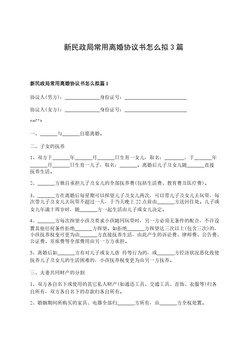 有婚后共同财产民政局离婚协议怎么拟篇3