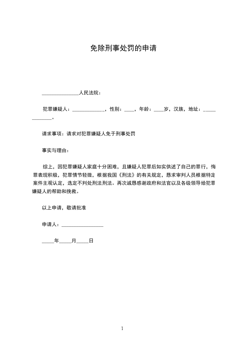 请求事项:请求对犯罪嫌疑人免于刑事处罚