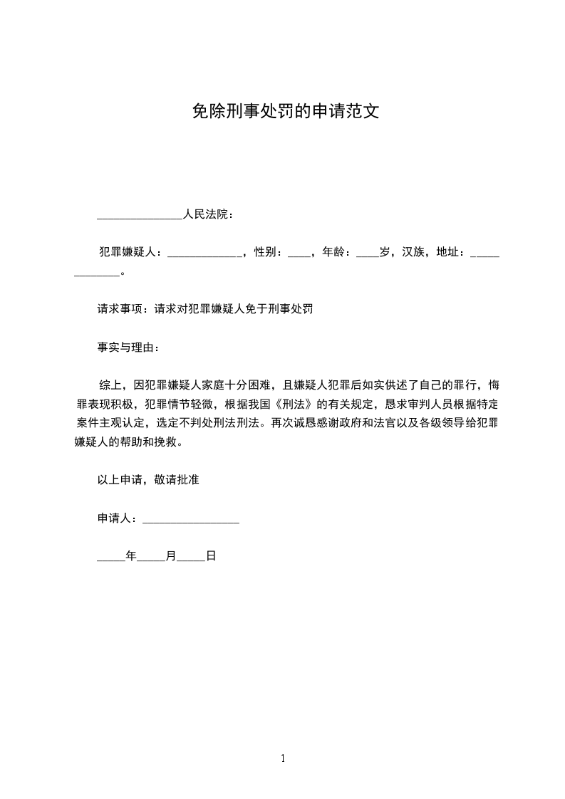 请求事项:请求对犯罪嫌疑人免于刑事处罚