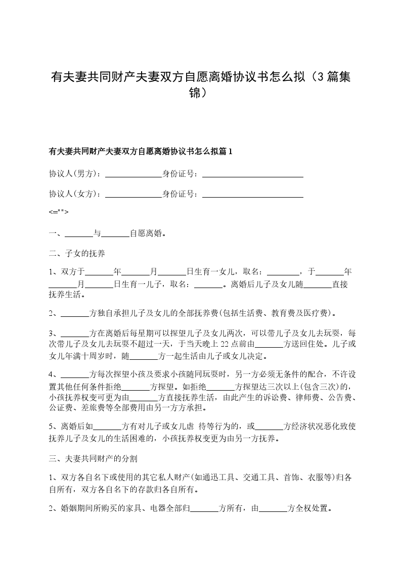 有夫妻共同财产双方协商离婚协议参考样板篇3