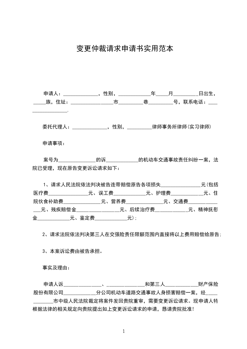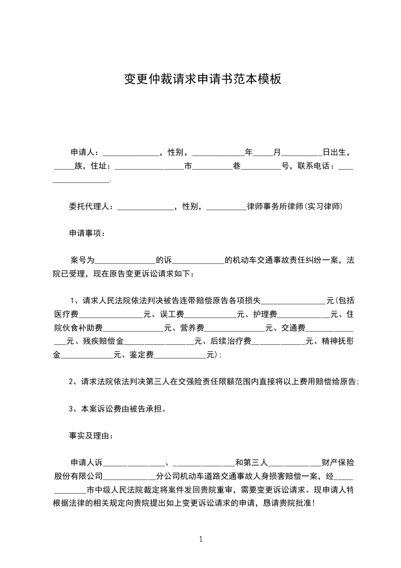 申请人诉_______________、_______________和第三人_____________财产保险股份有限公司_____________分公司机动车道路交通事故人身损害赔偿一案,经_____________市中级人民法院裁定将案件发回贵院重审,需要变更诉讼请求。现申请人特根据法律的相关规定向贵院提出如上变更诉讼请求的申请,恳请贵院批准!