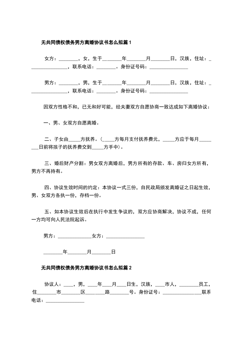 1、甲乙双方确认在婚姻关系存续期间无共同债务;