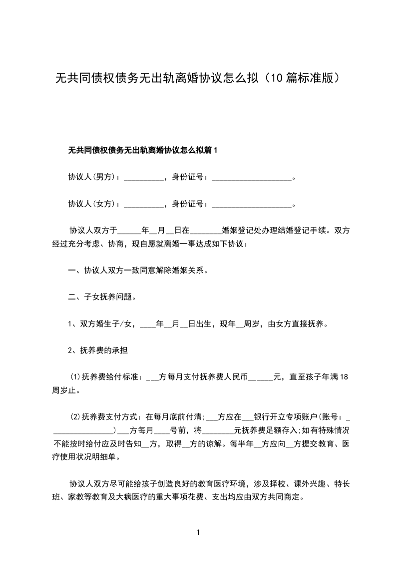 无共同的债权无出轨离婚协议书怎么拟篇10