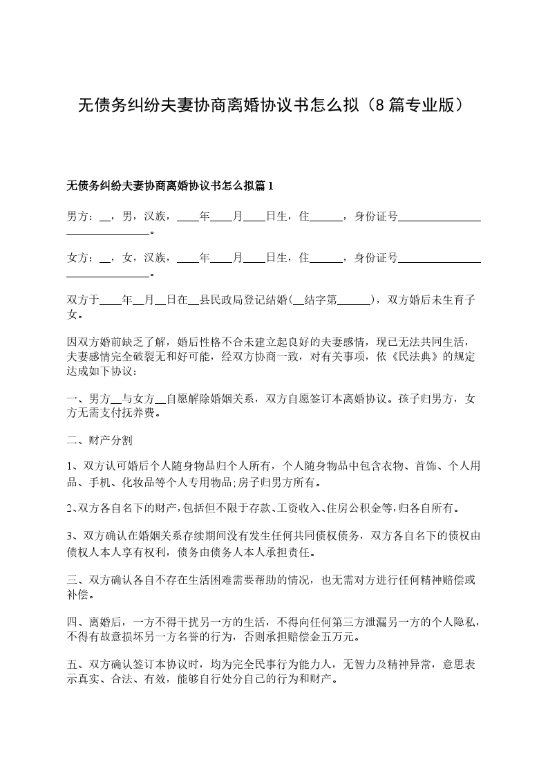 无债务纠纷夫妻协商离婚协议书怎么拟篇8