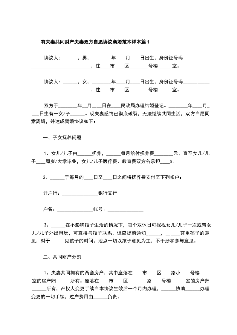 有夫妻共同财产夫妻双方自愿协议离婚范本样本篇1