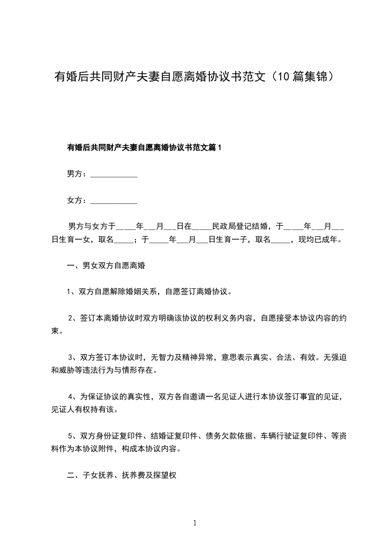 有婚后共同财产夫妻自愿离婚协议参考样例篇10