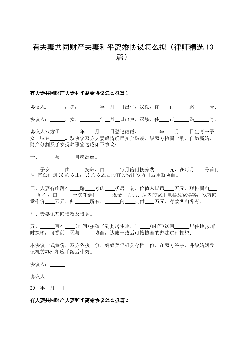 有夫妻共同财产无出轨协议离婚书怎么拟篇9