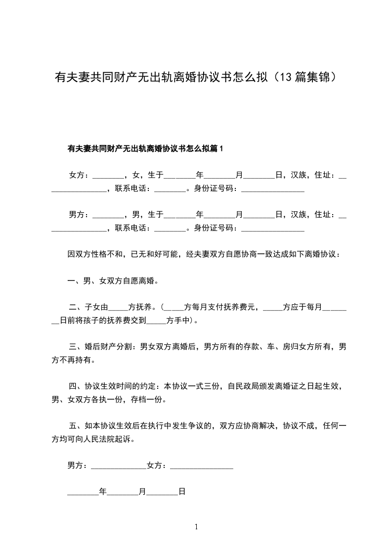 有夫妻共同财产无出轨协议离婚书怎么拟篇13