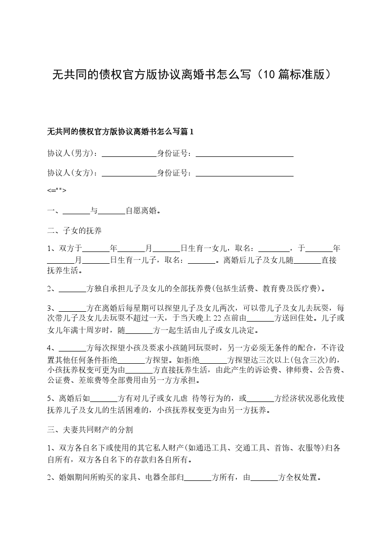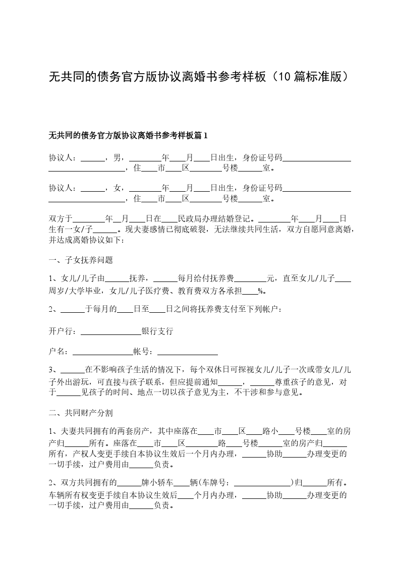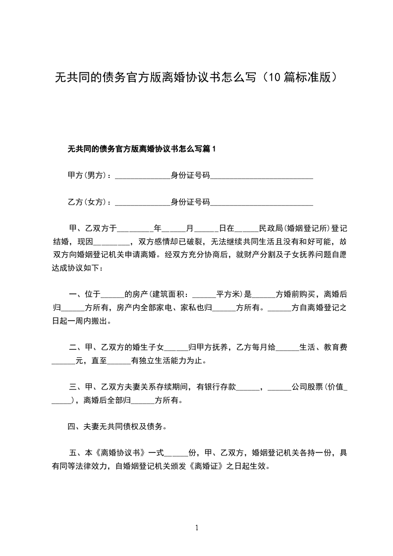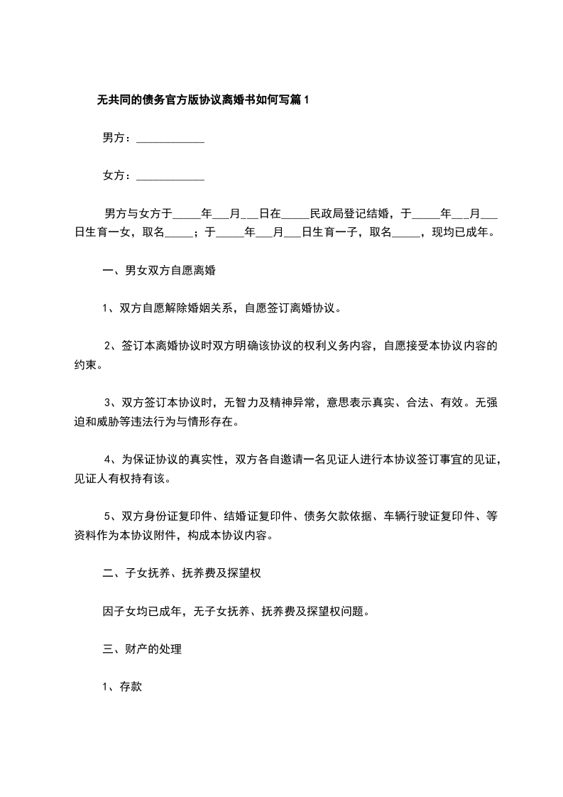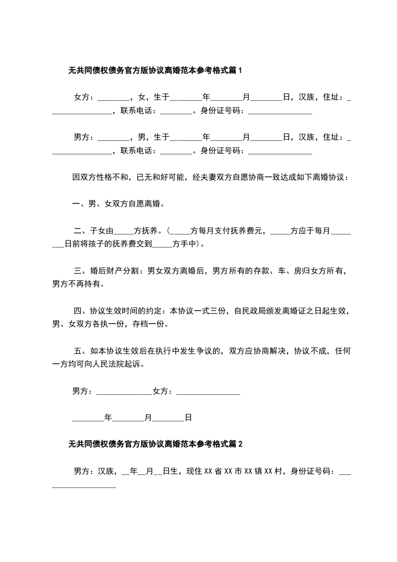 1、甲乙双方确认在婚姻关系存续期间没有发生共同债务。