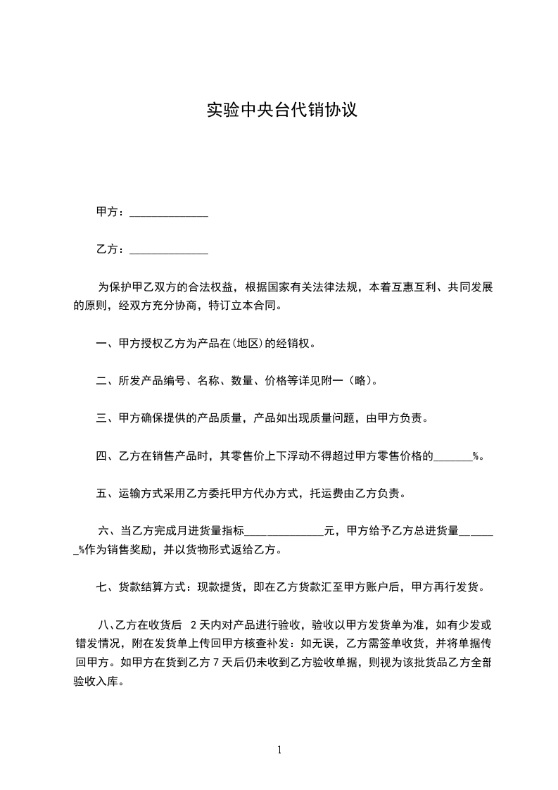 六、当乙方完成月进货量指标______________元,甲方给予乙方总进货量_______%作为销售奖励,并以货物形式返给乙方。