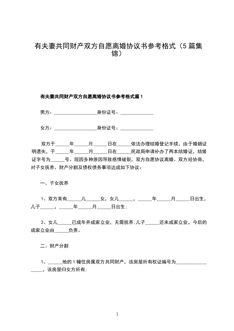 有夫妻共同财产双方自愿离婚协议书参考格式篇1