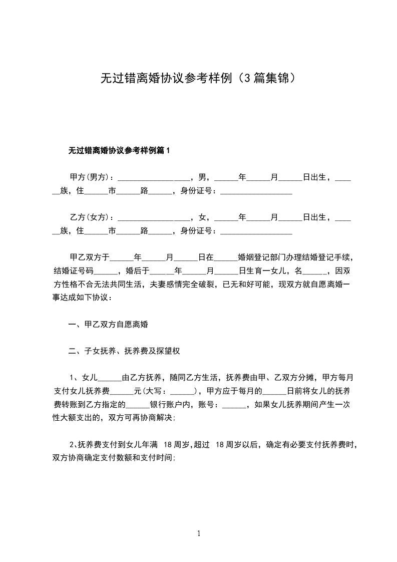 有婚后共同财产无过错协议离婚书参考格式篇3