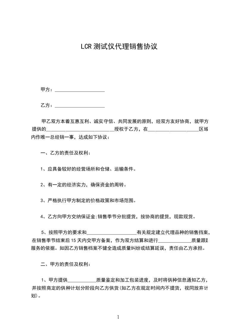 甲乙双方本着互惠互利、诚实守信、共同发展的原则,经双方友好协商,就甲方提供的____________________________授权于乙方,在_____________________区域内作唯一总经销一事,达成如下协议: