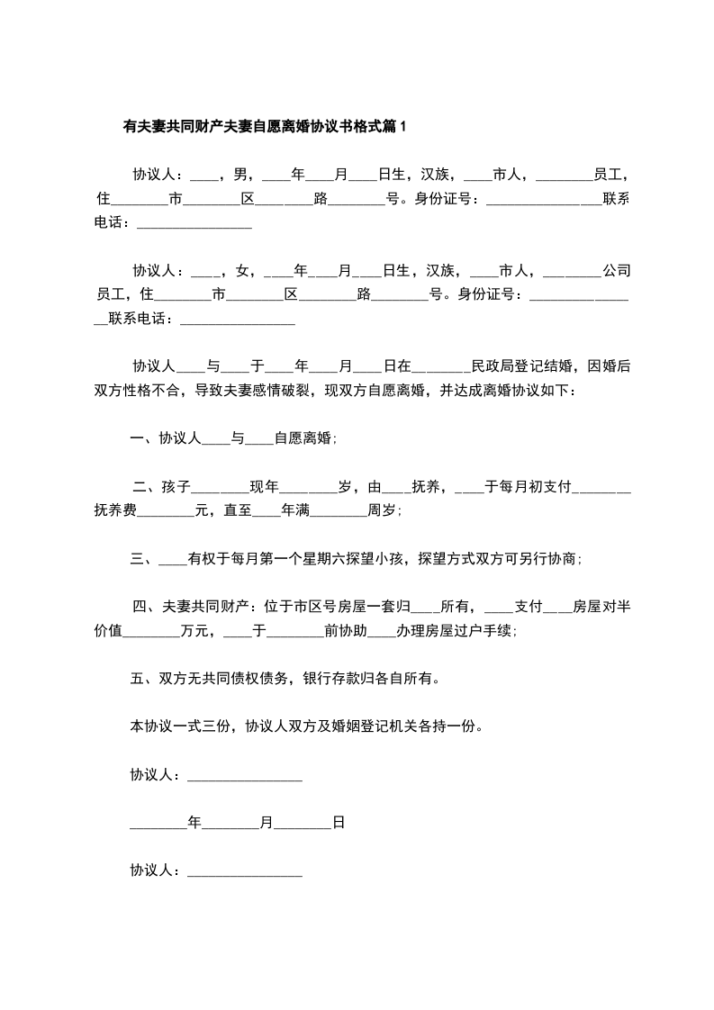 有夫妻共同财产夫妻自愿离婚协议书模板篇1